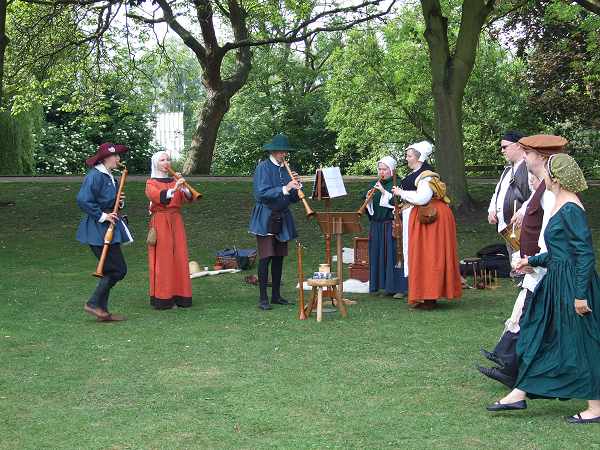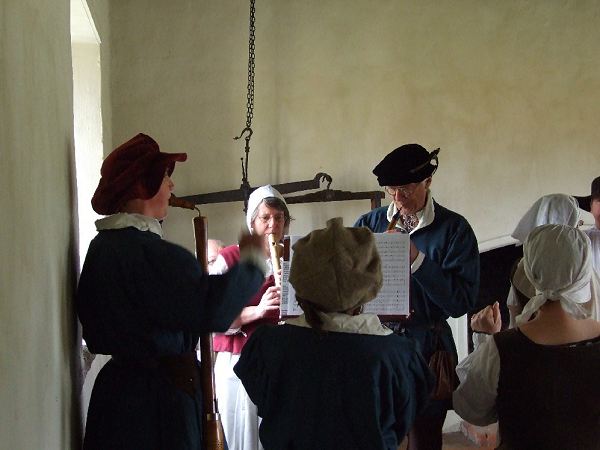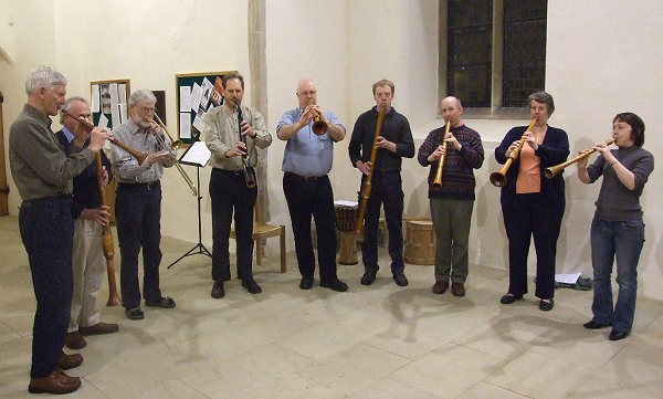 John Hanchet teaching the shawm at Cressing Temple Renaissance Winds Workshop.