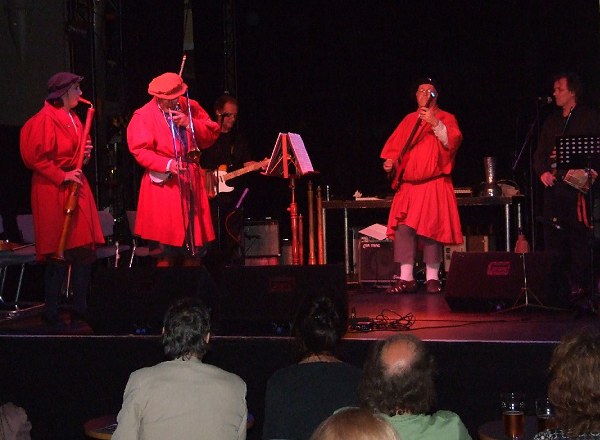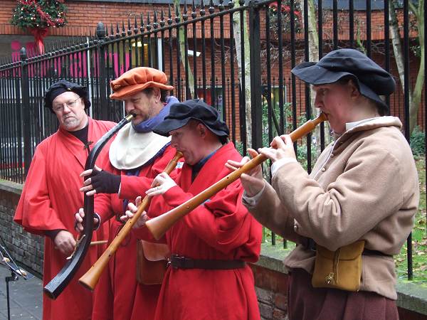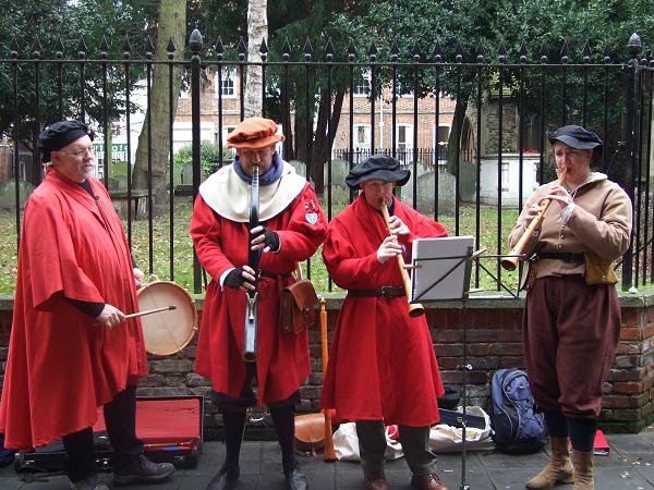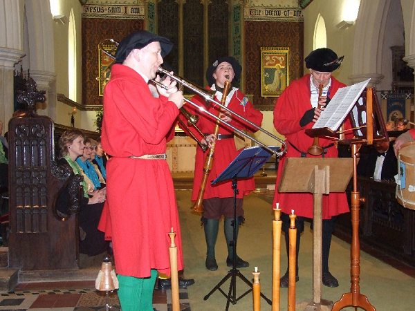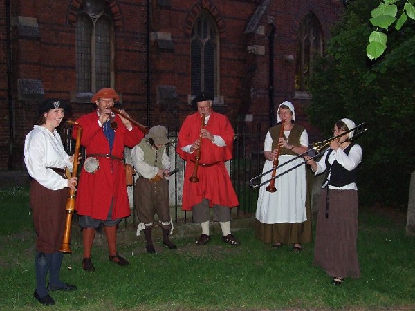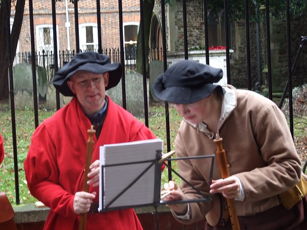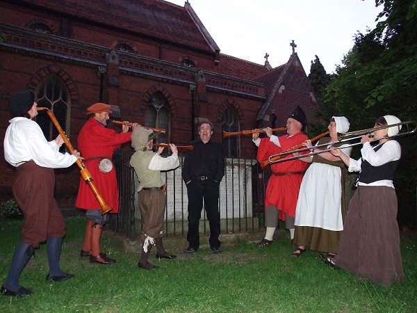 How it all started: Lizzie and Chris of Wyldes Noyse with Phil and Paul of the Colchester Waits performing together in Chingford